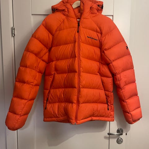 Peak Performance Dunjacka i storlek M för herrar. Jackan är brun och tillverkad av dun, vilket ger isolering och värme. Passar för utomhusbruk och kallare väder.