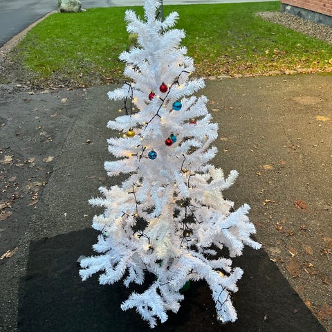 Fästs enkelt på granen med små "stålband"