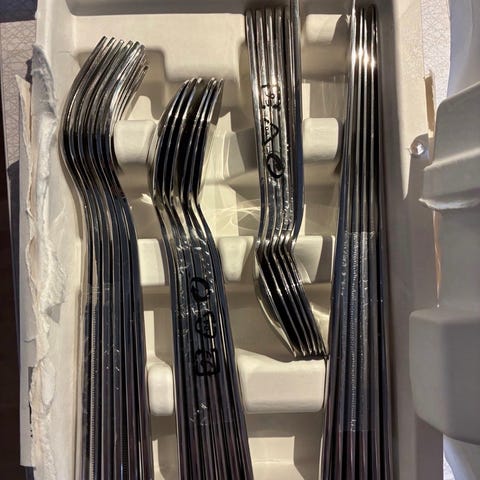 Besticken är i gott begagnat skick med normal patina. Tygfodral medföljer.
