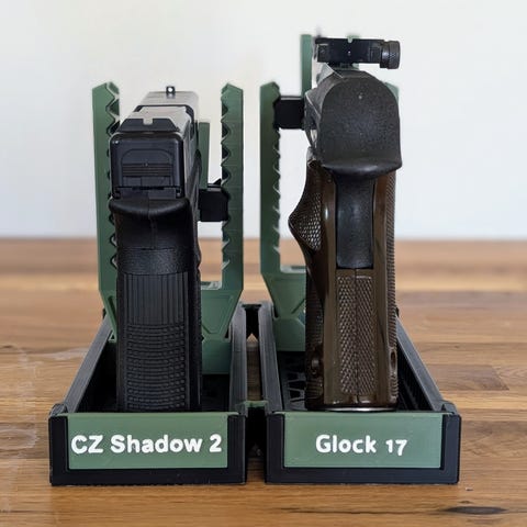 Praktisk vapenhållare med slimmad design(Bredd 6 cm) som passar i trånga utrymmen som i vapenskåp.