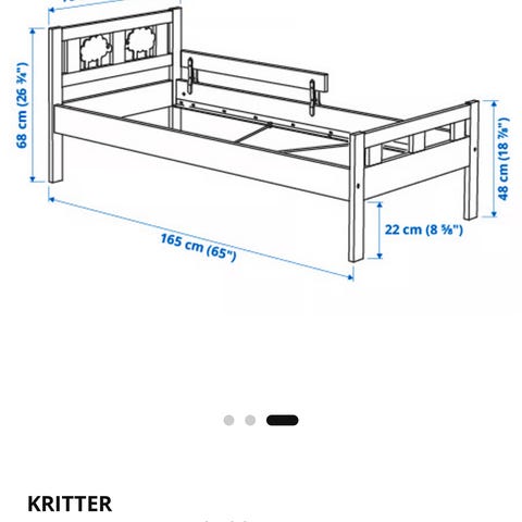 IKEA Kritter juniorsäng med ribbotten i vit färg, mått 70x160 cm. Sängen är avsedd för barn och har en enkel design som passar i barnrum.