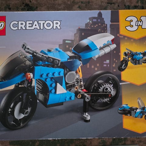 LEGO Creator Motorcykel / superbike byggsats (31114) i blå färg. Innehåller delar för att bygga en motorcykel med detaljerade komponenter. Passar för konstruktion och lek.