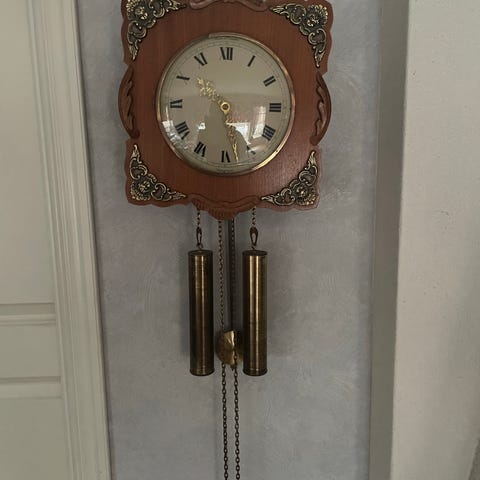 Antik bordsklocka med två figurer i metall och en urtavla med romerska siffror. Uret fungerar inte. Del av pilbåge behöver limmas (se bilder) i övrigt mycket fint skick