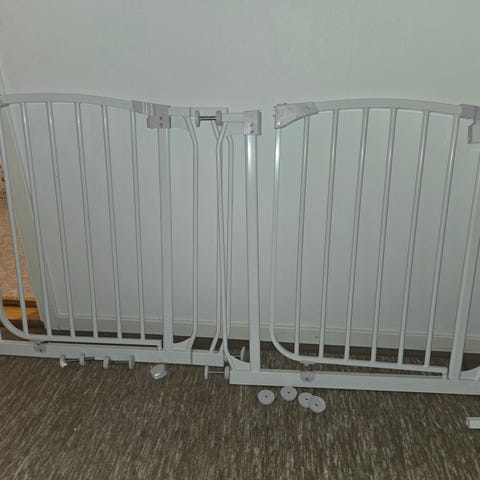 Två fina trappgrindar i trä. Enkla för vuxna att öppna med en hand. 93 respektive 95 cm. 250 kr för enbart en.