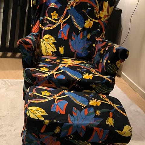 Överdrag från Ikea till fåtölj Strandmon i kraftigt bomullstyg.