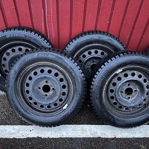 Vinterdäck Kumho på fälg passar bla. till Reanault Clio. 2 st använda en vinter och 2 st använda 2 vintrar.