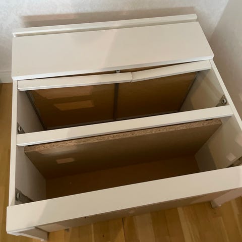 Svart. Finns även en svart glasskiva till men är dock ganska repig men kan fås med.