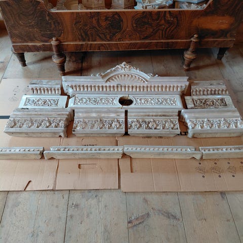 Kakelugn i vitt porslin, försiktig demonterad