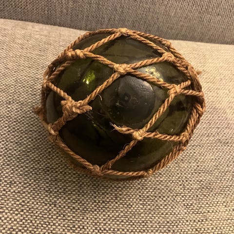 Fina handblåsta glasflöten. Ett märkt Albrechtssons. Nätade med riktig hampa som det ska vara.