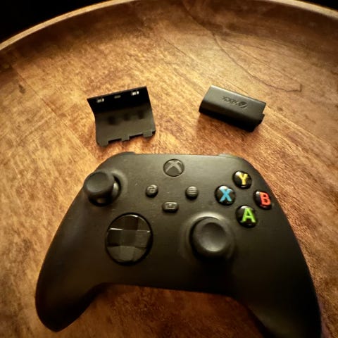 Microsoft Xboc one s trådlös handkontroll i svart och grön färg. Handkontrollen är kompatibel med Xbox och har avancerade funktioner för spelkontroll.
