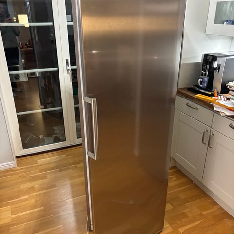 Siemens FD910 kylskåp med kyl- och frysfack. Utrustad med glas- och plasthyllor samt förvaringsfack i dörren. Vit färg och standardstorlek för köksinstallation.