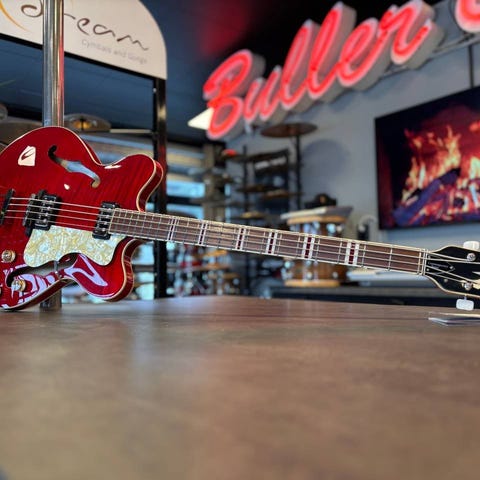 Inklusive tidsenligt hard case. Bytta rattar och bytt/målat plektrumskydd.