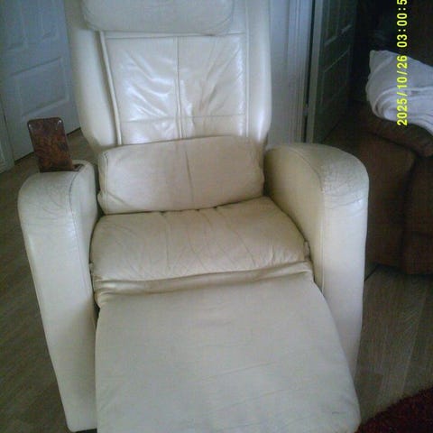 Man kan sitta upprätt i fåtöljen och få massage eller välja att fälla rygg och ben i önskat läge.