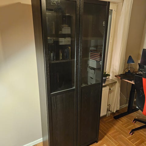 3st hyllor, 1glasdörr, 1halvhög täckande dörr