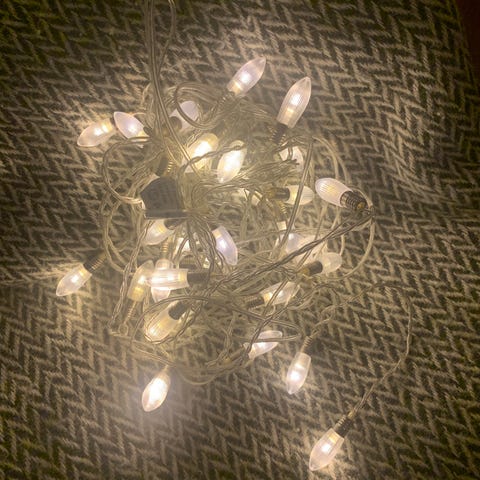 🌸 slingorna är cirka 1,5 m långa. Sladden till uttagen 1,5 till ungefär. Totalt skulle jag säga att slingan är 3m lång.