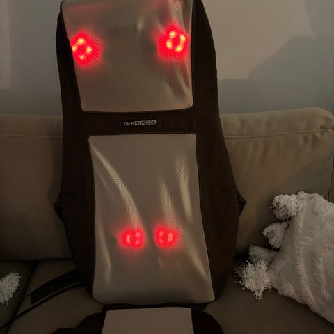 Beurer infraröd lampa för värmeterapi. Produkten är avsedd för hemmabruk och kan användas för att lindra muskelvärk och förbättra blodcirkulationen. Lampan har en vit bas och ett rött värmeelement. Lampan är en oönskad gåva och har två års garanti kvar.