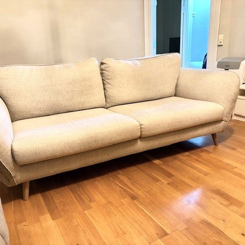 Säljer våran fina beiga soffa Maxime 4-sits från soffadirekt. Köptes för ett år sedan.