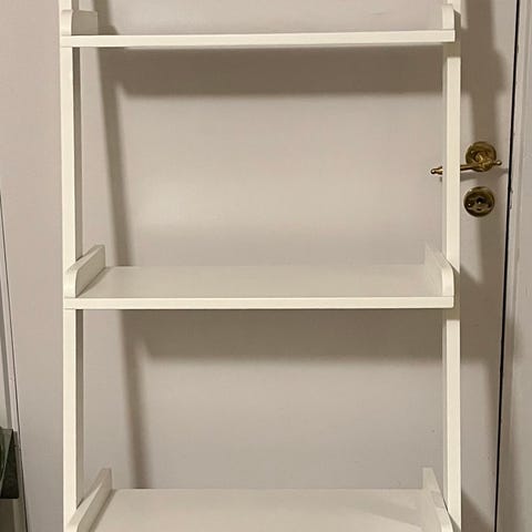 Hylla i trä från Mio. Perfekt för smala ytor som avlastning eller dekoration. Gott skick, hämtas på Södermalm, Stockholm.