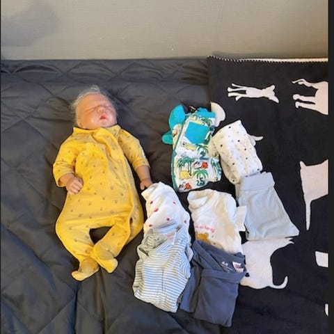 2 st reborndockor ca 2000kr nypris. 1 vanlig docka i bilstol.sminkhuvud, två pottor, 1 matstol