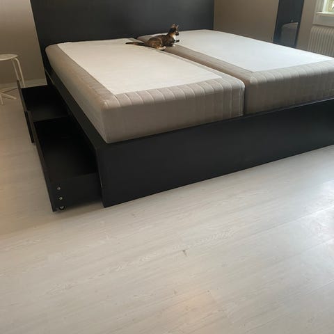 Ikea Malm säng med förvaring med madrass. Sängen är mycket gott skick. Endast använd som extra säng. Fler bilder kan skickas vid intresse.