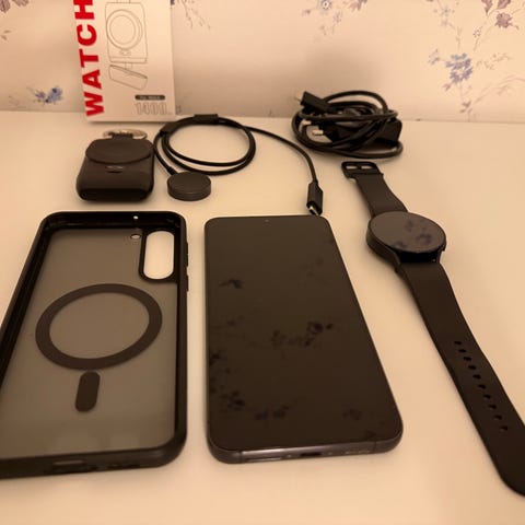Samsung Galaxy S22 mobiltelefon 256 GB och Galaxy Watch.