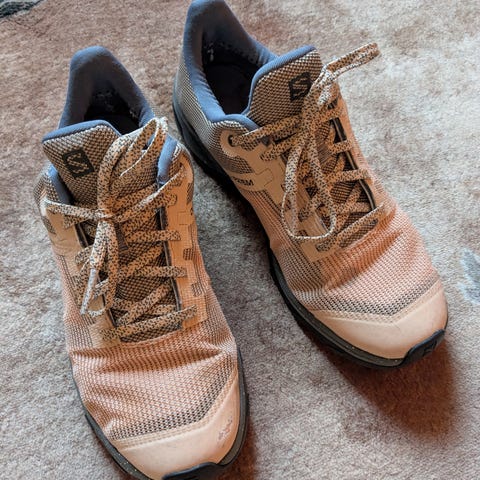 Salomon Aero Glide löparskor i storlek 42, blå färg. Skorna är designade för löpning och har en aerodynamisk form för förbättrad prestanda.