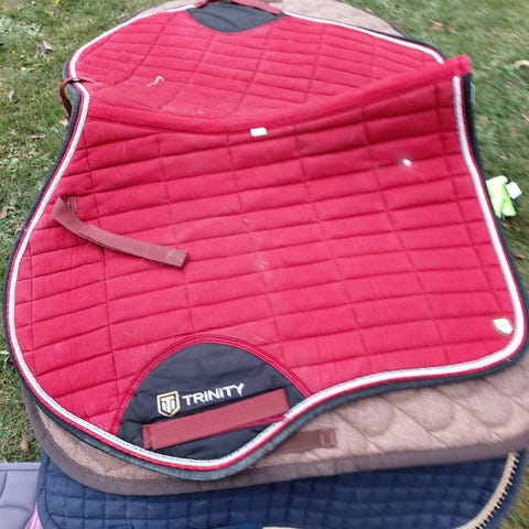 Grönt schabrak med matchande luva från Trinity. Storlek full både på schabrak och luva. I dressyrmodell. Luvan är endast använd 1-2ggr , schabraket är lite mer använt men nytvättat och i fint skick!