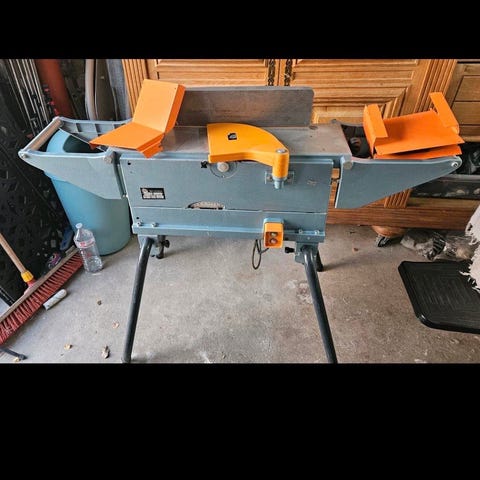 Stämmborrmaskin från Jonserds. Specifikationer kan ses på bild. Har sannolikt inte körts på många år, därför är det svårt att säga något om dess funktion idag. Kontaktdon saknas på sladd.