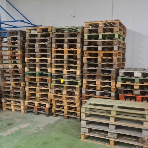 Pallarna är i relativt bra skick, hela och stabila, med tydlig EPAL-märkning.