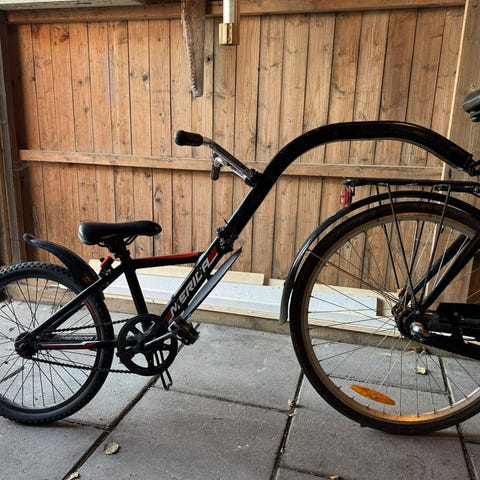 Påhängscykel Merida säljes. Kopplas på bakom en vanlig cykel genom att fästas i sadeln. Ok skick men synligt använd