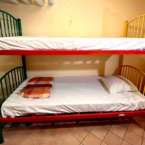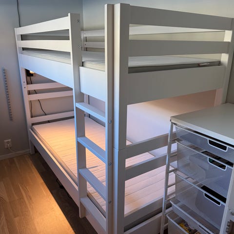 Lite använd våningssäng med stege i stålkonstruktion. Kraftigt byggd.