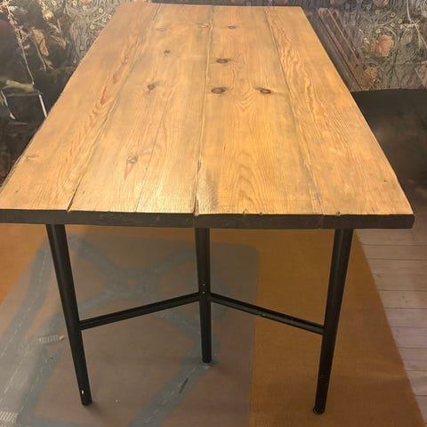 Matsalsbord med sliten bordsskiva som finns i Odensala i Uppland säljes. Brunt i trä. Stabilt bord. 500kr eller bud.