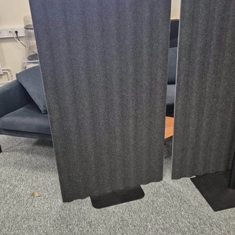 Absorberande ljudpanel (bordsskärm) 160 cm bred i ljusgrå färg. Panelen används för att minska ljudreflektioner och förbättra akustiken i rum. Skruvarna går att ta bort för att istället hänga på väggen. 3 st finnes. 250kr styck