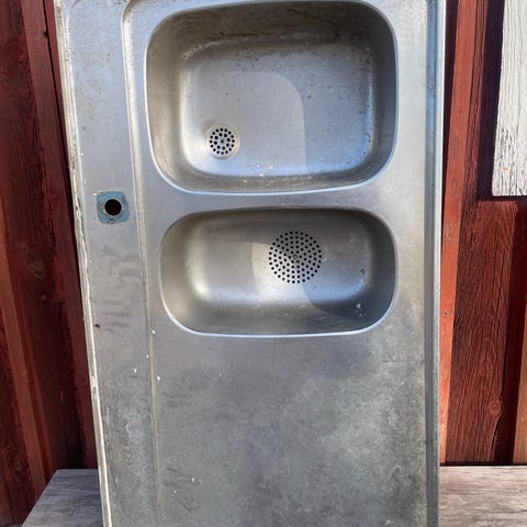 Diskho av rostfritt stål, inklusive vattenlås och avloppsrör.