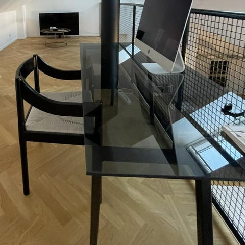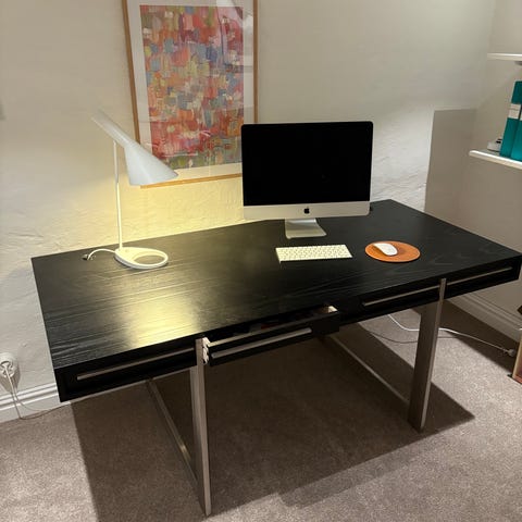 Ett par år gammalt, oljat in bordet och såpat in skivan regelbundet, finns inte en skråma någonstans, som ”nytt”.