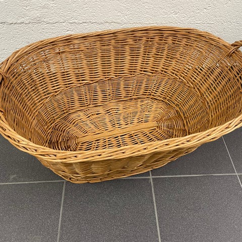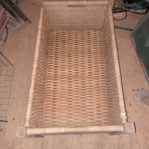 En äldre korg kanske använd som barn säng eller tvättkorg.