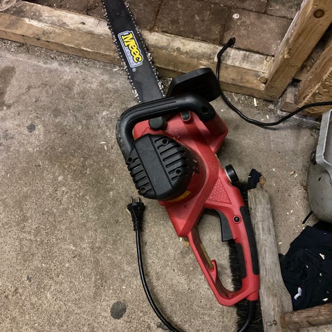 En motorsåg från Meec sågen funkar bra men kedjan måste bytas
