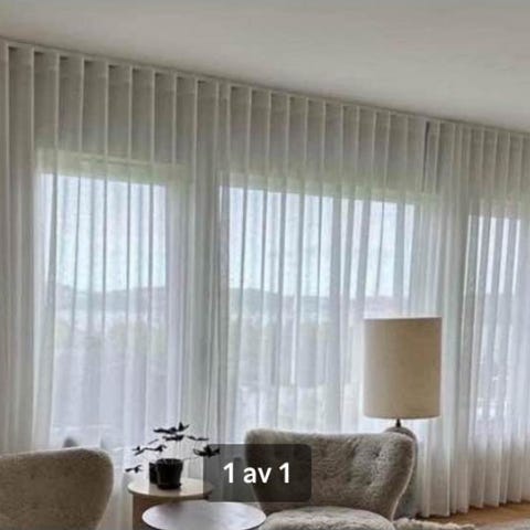 Jätte fina måttsydda Linné gardiner i lite grövre linne material. Gardinerna har fina självfallande vågor och sydd med flera alternativa upphäng . Det är 3 m per gardin längd därav så många fina vågiga fall. Vita storlek 3m bredd men sydd så att det är 1,5 m vågig. Längd 2,5 m.
