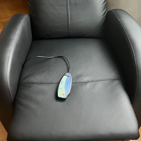 svart, skinnimitation, går att luta bakåt. Knappt använd.