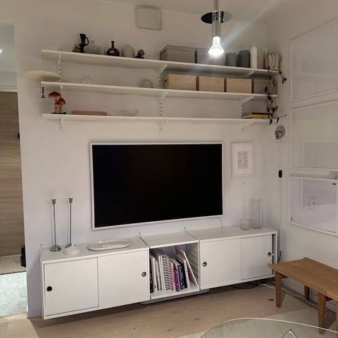 Tv:n köptes ny på Elgiganten 26 december 2020 för 9 990 kr och den beige ramen köptes samtidigt för 990 kr. Allt är i mint condition, inga repor, inga skador, inga fel och den funkar helt felfritt. Med följer originalväggfäste, fjärrkontroll, alla tillbehör samt den ljusa beige ramen. Modellen heter Samsung The Frame 55" 4K UHD QLED Smart-TV QE55LS03TAU (2020).