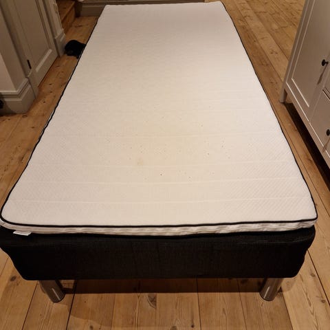 Jag säljer en resårmadrass med bäddmadrass och ben från vårt gästrum.
