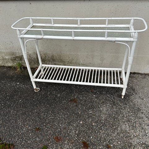 Blomsterhylla i rotting med två plan. Höjd 52 cm, Bredd 40,5 cm, Djup 27,5 cm