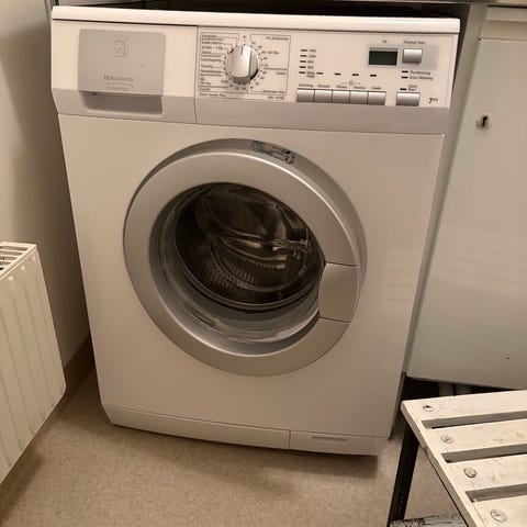Electrolux frontmatad tvättmaskin med flera tvättprogram för olika material och tvättbehov. Utrustad med en användarvänlig ratt och digital display för inställningar. Vit färg och standardstorlek för hemmabruk.