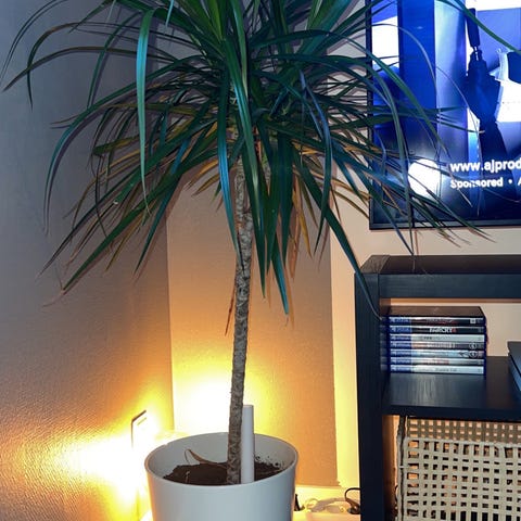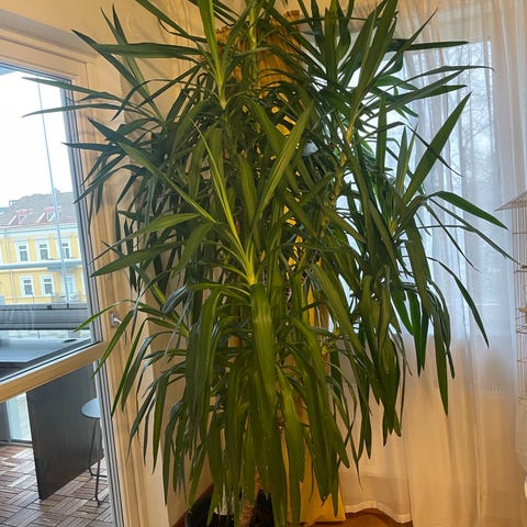 Växten har flera långa, smala gröna blad och en robust stam. Passar som inomhusdekoration.
