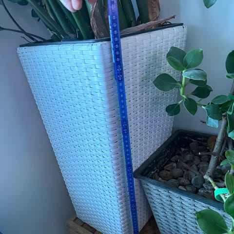 Yucca palmväxt 1 M hög, planterad i en vit kruka. Krukan är 60 cm hög , cylindrisk och har självbetjäning bevattning Total 1.6 m hög.