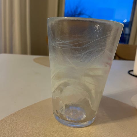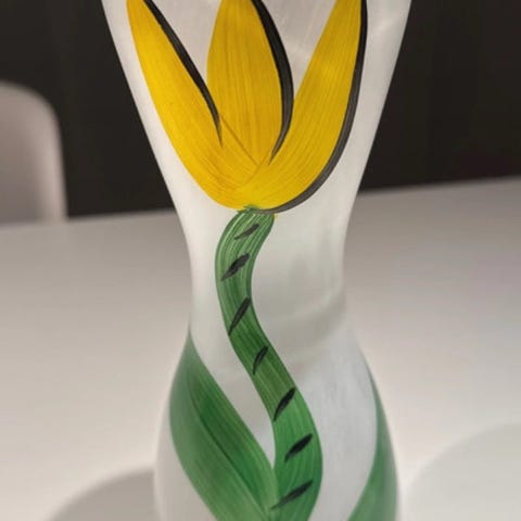 Vase från Kosta Boda. Designad och signerad av g Sahlin . Årtal 1996.
