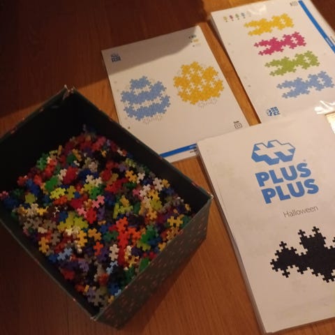Plus Plus barnleksaker byggklossar i flera färger. Setet innehåller bitar i olika färger som kan användas för att bygga och skapa olika former och mönster.