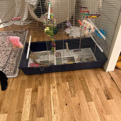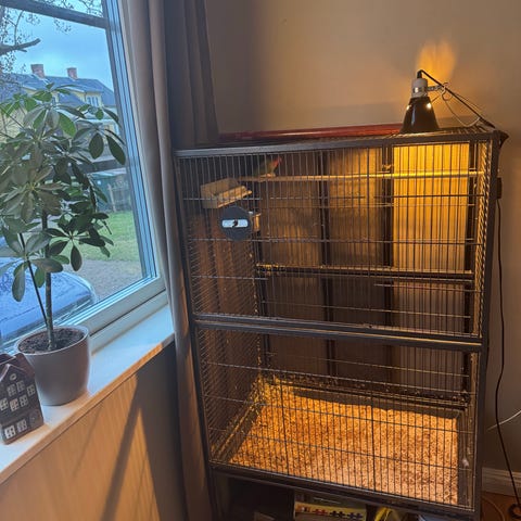 Fågelbur; i mycket ny skick, nypris ligger på cirka 2250 kr. TIAKI ROBIN, fågelbur i trä.