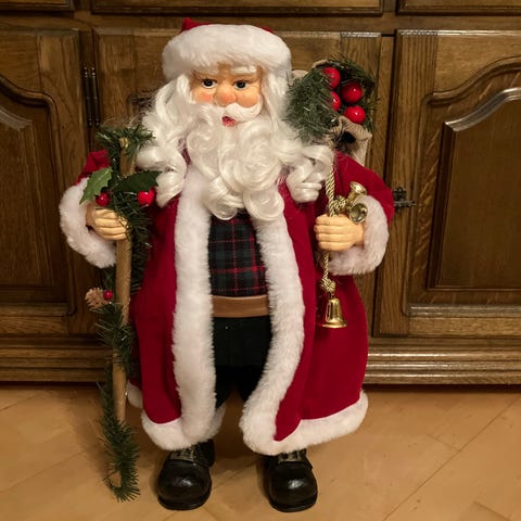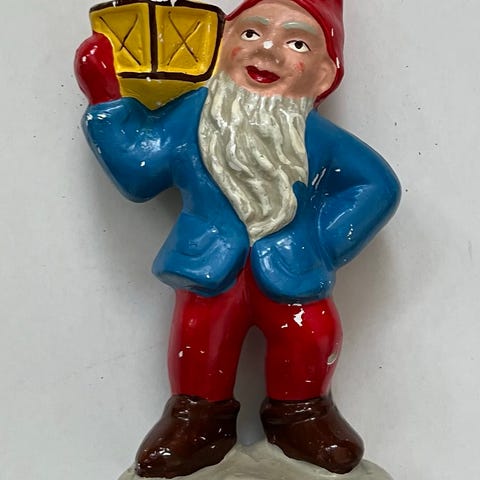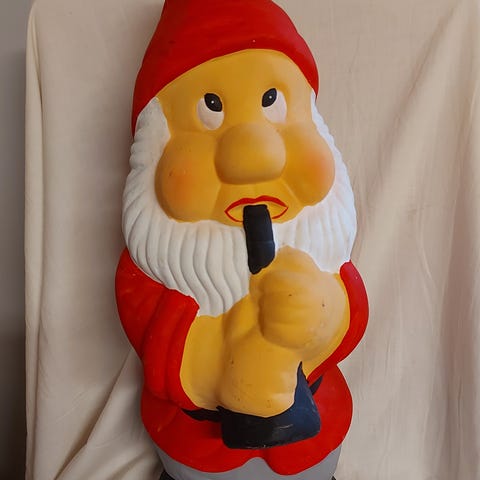 Tomten är i bra skick förutom en spricka i ena foten som har limmats. Tomten finns i Ronneby, Blekinge för avhämtning.