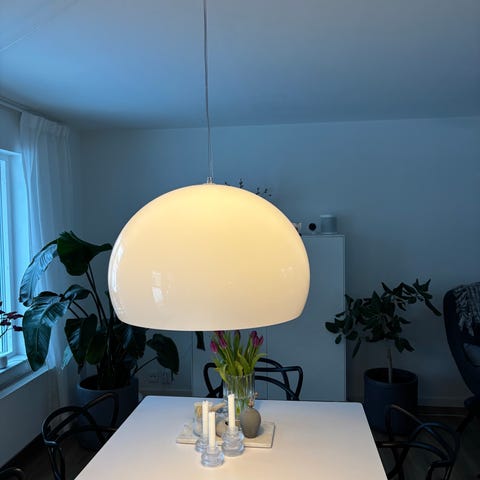 Säljer en original Kartell FL/Y pendellampa ( 52cm i diameter ) i begagnat skick. Lampan fungerar som den ska och ger ett fint, jämnt ljus. Den har normalt bruksslitage men inga defekter som påverkar funktionen.